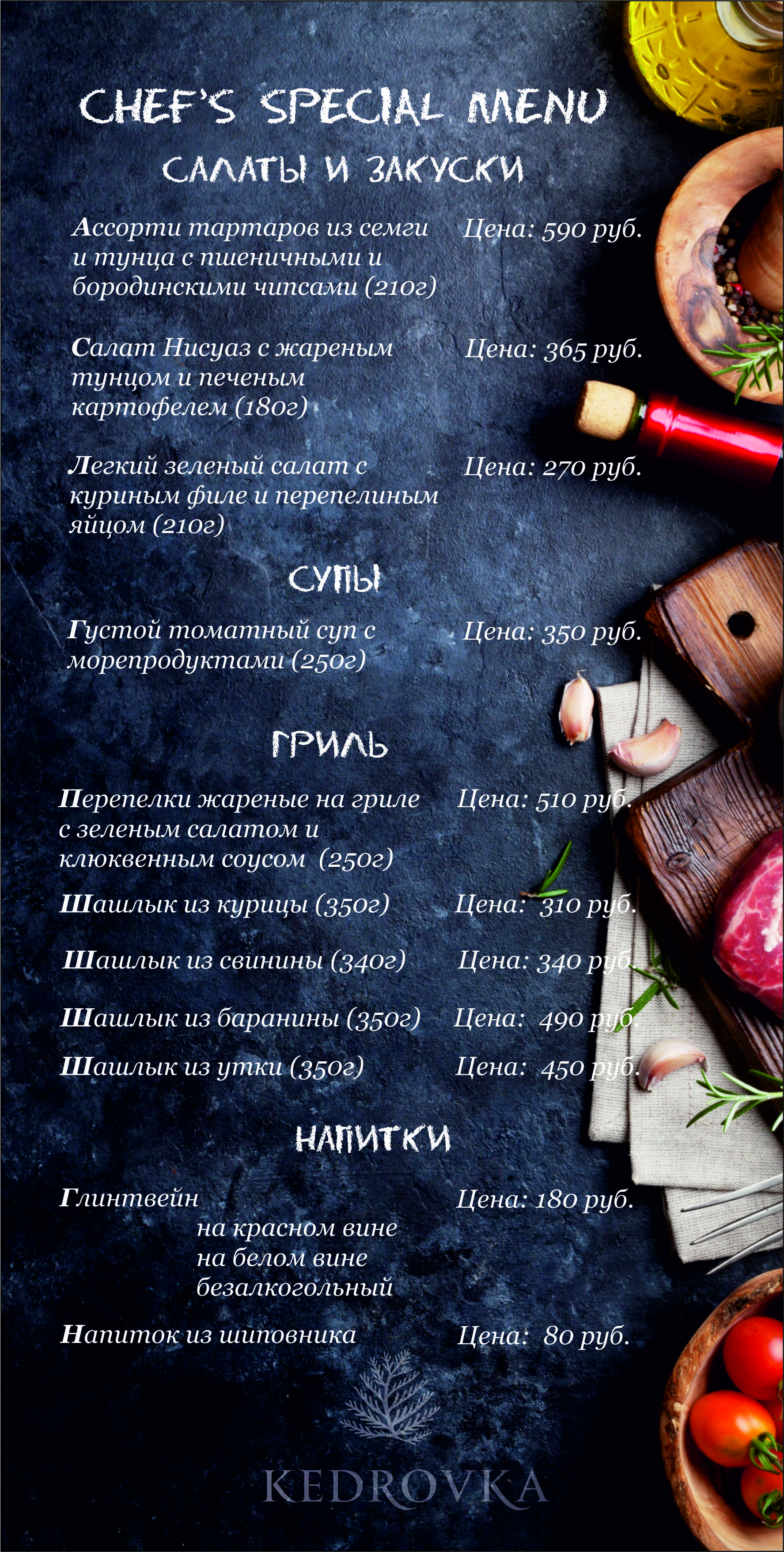 кафе Chef меню