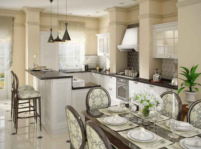 дизайн кухни и столовой в частном доме фото